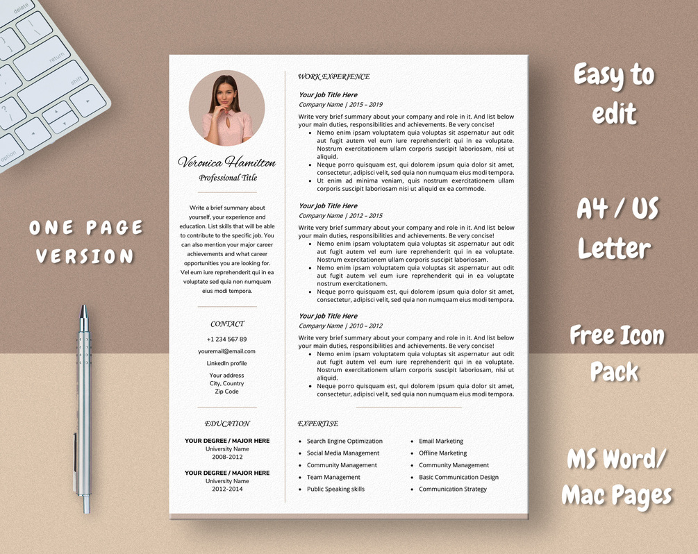 - 1 page resume template in A4 and US Letter format