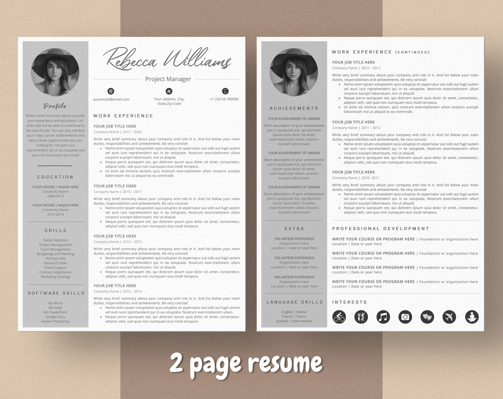You will receive 2 ZIP attachments which include resume files both for MS Word and Pages: